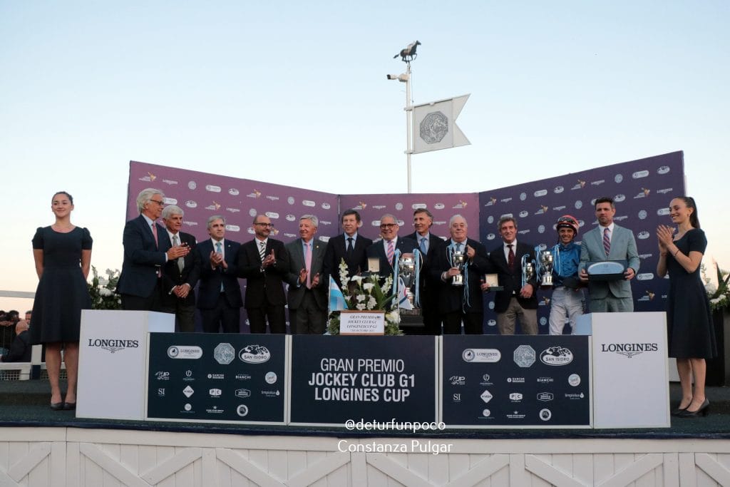 Premiaron a los ganadores mediante la entrega de los trofeos los Sres. Sr Juan Mariano Villar Urquiza (Presidente de OSAF ), Winfried Engelbrecht-Bresges (Presidente de IFHA), Juan de la Cruz Ramallo (Presidente de la Comisión de Carreras), Melchor Posse (nieto de Melchor Posse), Raúl Pizarro Posse (Secretario General del Jockey Club) y Guillermo Strada (Comisión del interior del JC). Longines acompaña la ceremonia de premiación mediante la entrega de un reloj Longines a los ganadores. El Sr. Miguel Ángel Palmer, Regional Brand Manager de Longines para México y Latinoamérica, entregó su reloj al propietario, entrenador y jockey de DOUTOR SUREÑO (BRZ).